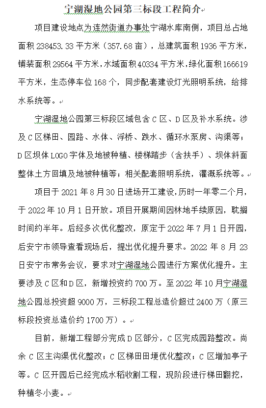 寧湖濕地公園第三標段工程簡介