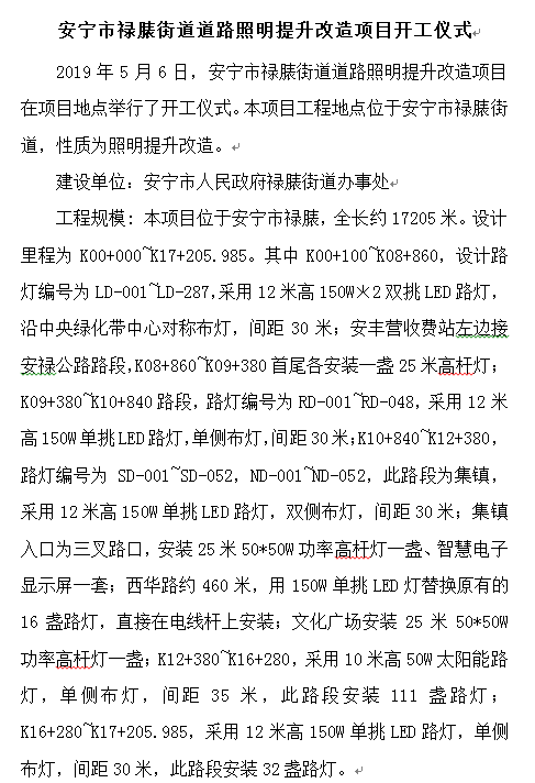 安寧市祿脿街道道路照明提升改造項(xiàng)目開工儀式