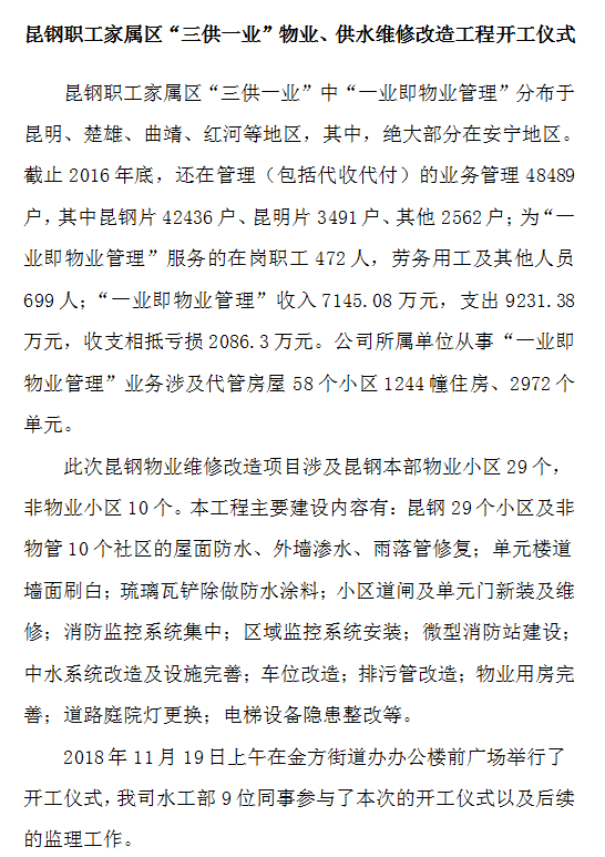 昆鋼職工家屬區(qū)“三供一業(yè)”物業(yè)、供水維修改造工程開工儀式