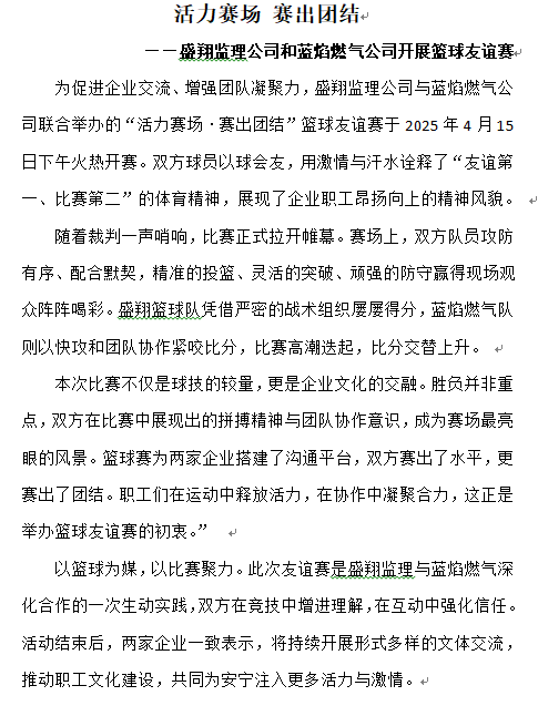 活力賽場 賽出團結(jié) ——盛翔監(jiān)理公司和藍焰燃氣公司開展籃球友誼賽