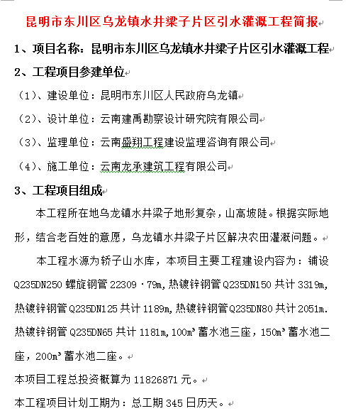 昆明市東川區(qū)烏龍鎮(zhèn)水井梁子片區(qū)引水灌溉工程簡報