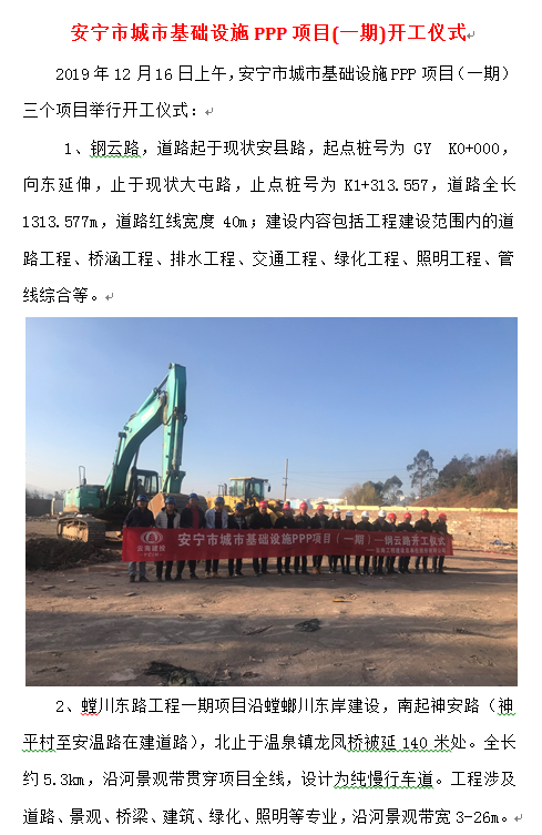 安寧市城市基礎(chǔ)設(shè)施PPP項目(一期)開工儀式