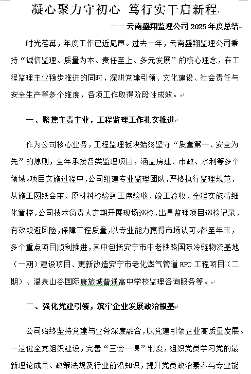 凝心聚力守初心 篤行實(shí)干啟新程 ——云南盛翔監(jiān)理公司2025年度總結(jié)