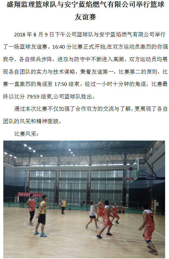 盛翔監(jiān)理籃球隊(duì)與安寧藍(lán)焰燃?xì)庥邢薰九e行籃球友誼賽