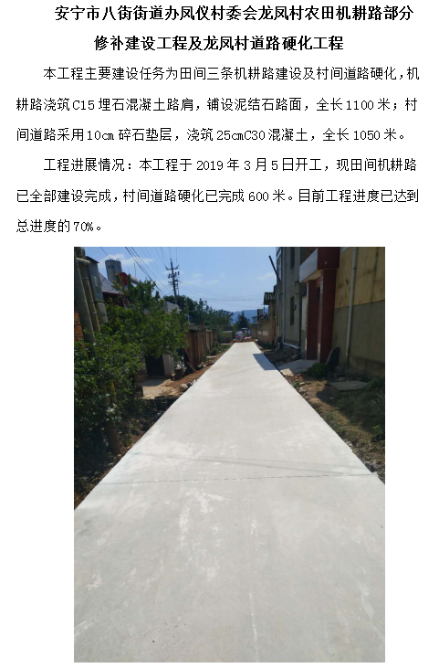 安寧市八街街道辦鳳儀村委會龍鳳村農(nóng)田機耕路部分修補建設(shè)工程及龍鳳村道路硬化工程