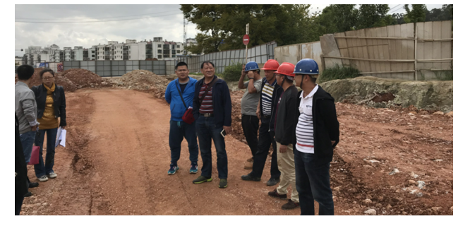 安寧市住房和城鄉(xiāng)建設局領導攜昆明市創(chuàng)“海綿城市”小組有關(guān)領導親臨我公司監(jiān)理的320國道金方路口至湖東路口改造工程現(xiàn)場指導工作