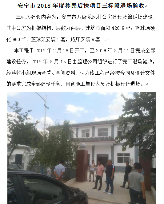 安寧市2018年度移民后扶項(xiàng)目三標(biāo)段退場驗(yàn)收