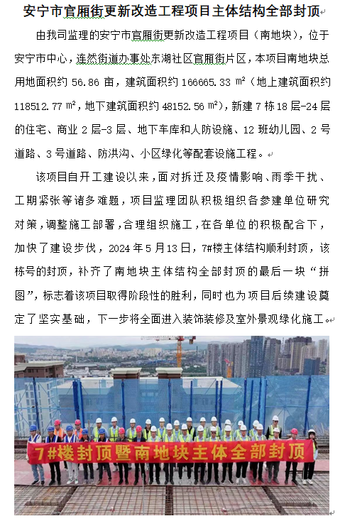 安寧市官廂街更新改造工程項(xiàng)目主體結(jié)構(gòu)全部封頂