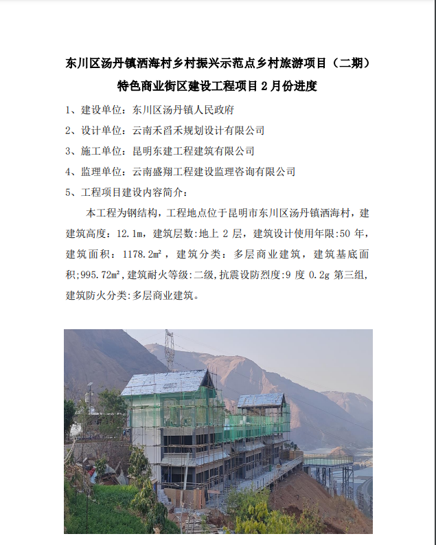 東川區(qū)湯丹鎮(zhèn)灑海村鄉(xiāng)村振興示范點(diǎn)鄉(xiāng)村旅游項(xiàng)目(二期) 特色商業(yè)街區(qū)建設(shè)工程項(xiàng)目2月份進(jìn)度