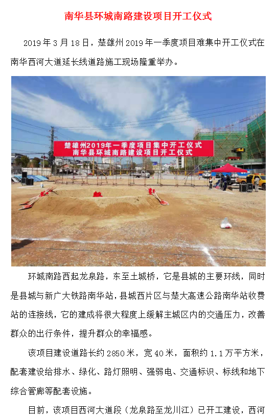 南華縣環(huán)城南路建設(shè)項目開工儀式
