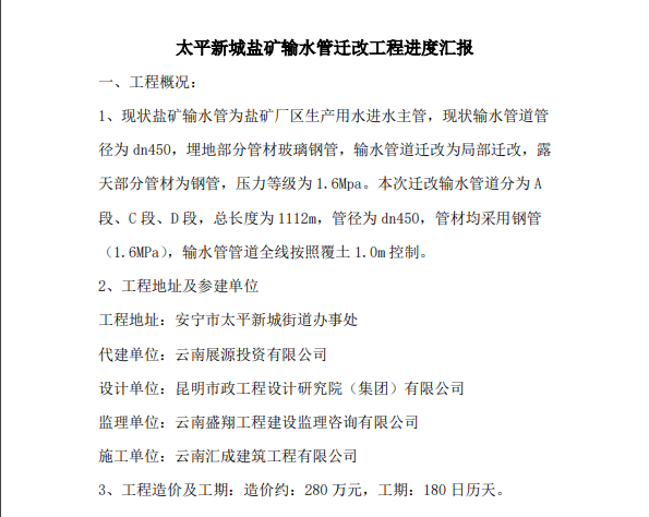 太平新城鹽礦輸水管遷改工程進(jìn)度匯報(bào)