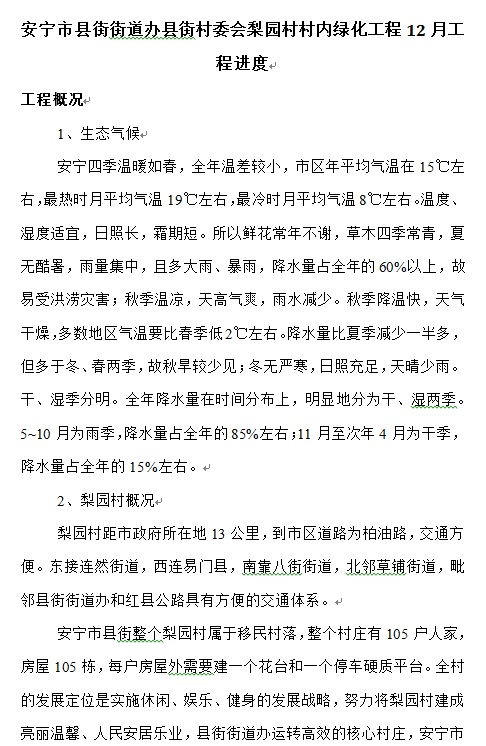 安寧市縣街街道辦縣街村委會(huì)梨園村村內(nèi)綠化工程12月工程進(jìn)度