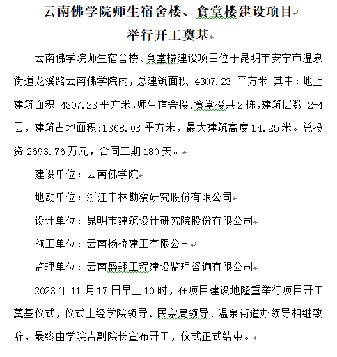 • 云南佛學(xué)院師生宿舍樓、食堂樓建設(shè)項(xiàng)目 舉行開(kāi)工奠基