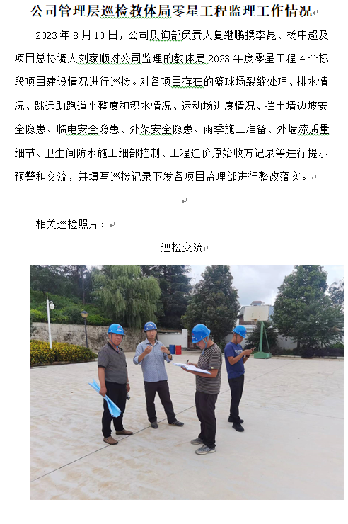 公司管理層巡檢教體局零星工程監(jiān)理工作情況