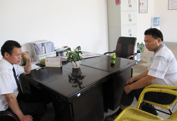 (韓總與員工交流)左起:寶興寧和家園物管主任孫繼權(quán)?? 公司總經(jīng)理韓春福