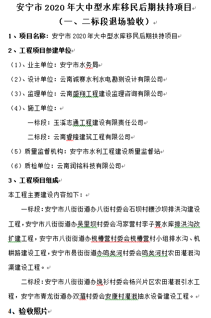 安寧市2020年大中型水庫(kù)移民后期扶持項(xiàng)目 (一、二標(biāo)段退場(chǎng)驗(yàn)收)