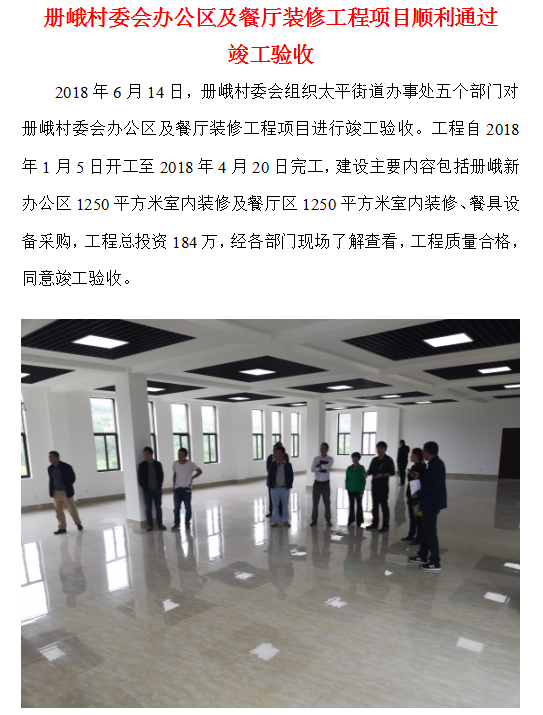 冊峨村委會辦公區(qū)及餐廳裝修工程項目順利通過 竣工驗收
