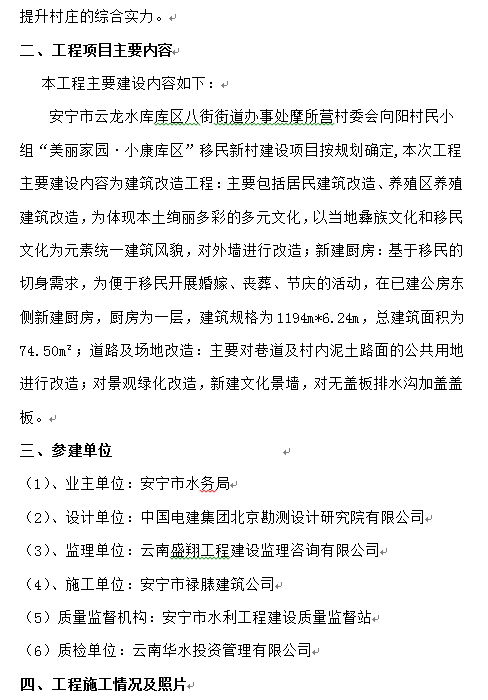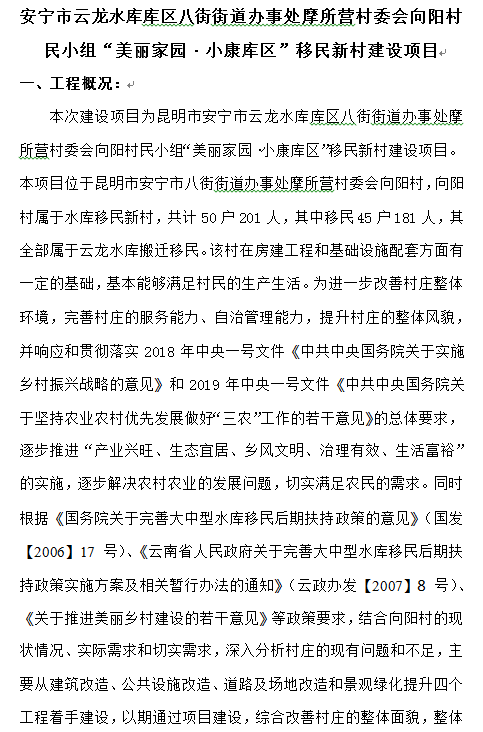安寧市云龍水庫庫區(qū)八街街道辦事處摩所營村委會向陽村民小組“美麗家園?小康庫區(qū)”移民新村建設(shè)項目