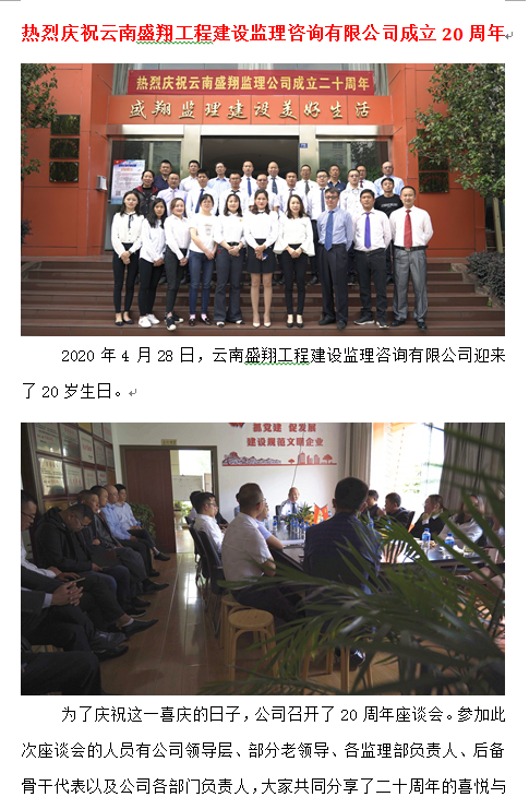 熱烈慶祝云南盛翔工程建設監(jiān)理咨詢有限公司成立20周年