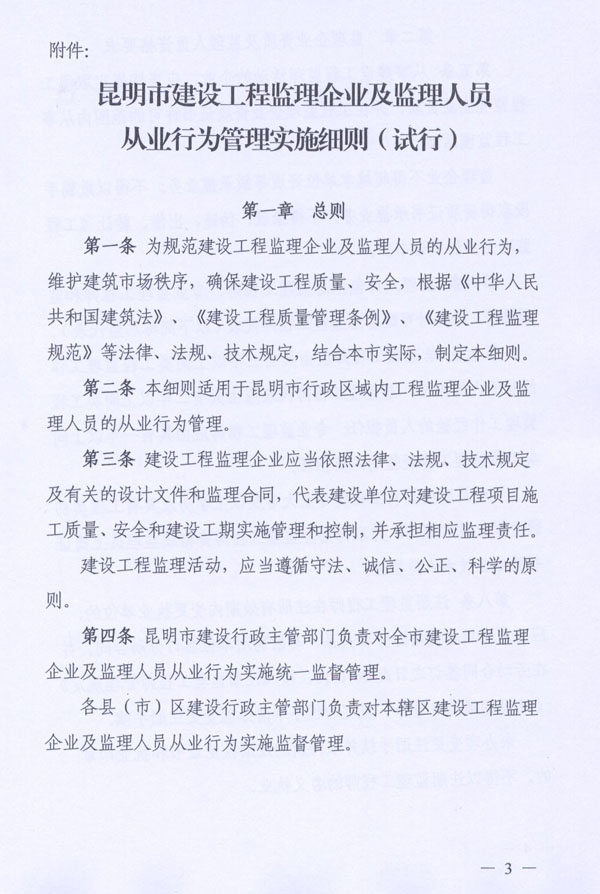 昆明市建設(shè)局關(guān)于印發(fā)《昆明市建設(shè)工程監(jiān)理企業(yè)及監(jiān)理人員從業(yè)行為管理實(shí)施細(xì)則(試行)》的通知