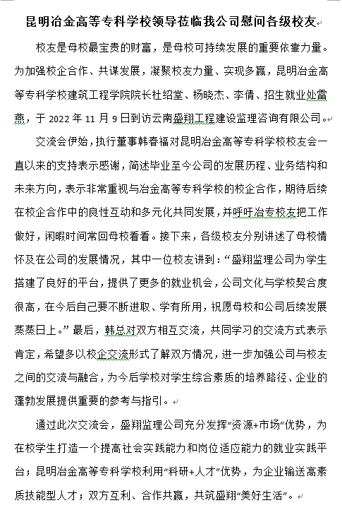 昆明冶金高等專(zhuān)科學(xué)校領(lǐng)導(dǎo)蒞臨我公司慰問(wèn)各級(jí)校友