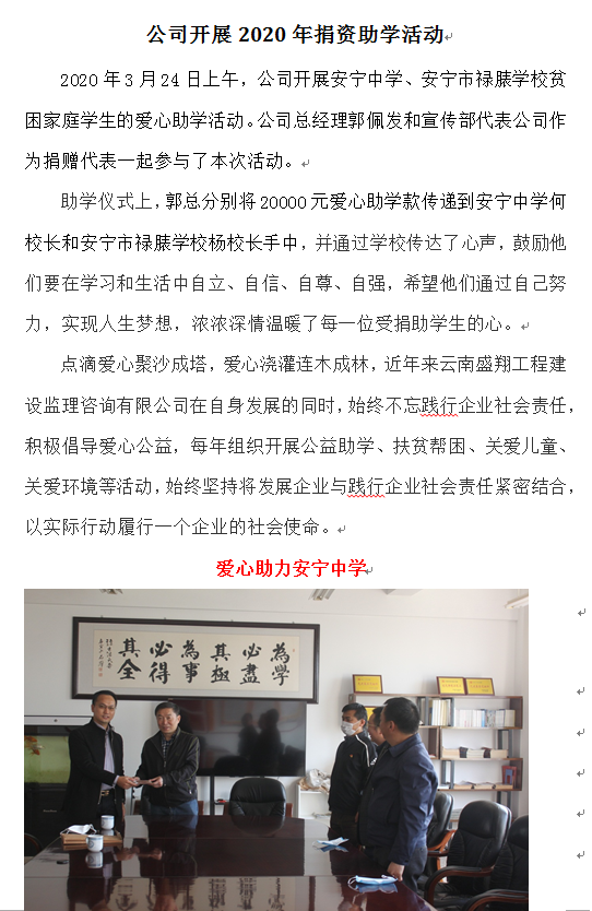 公司開(kāi)展2020年捐資助學(xué)活動(dòng)