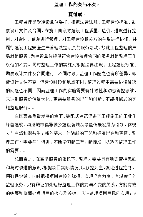 監(jiān)理工作的變與不變——夏繼鵬
