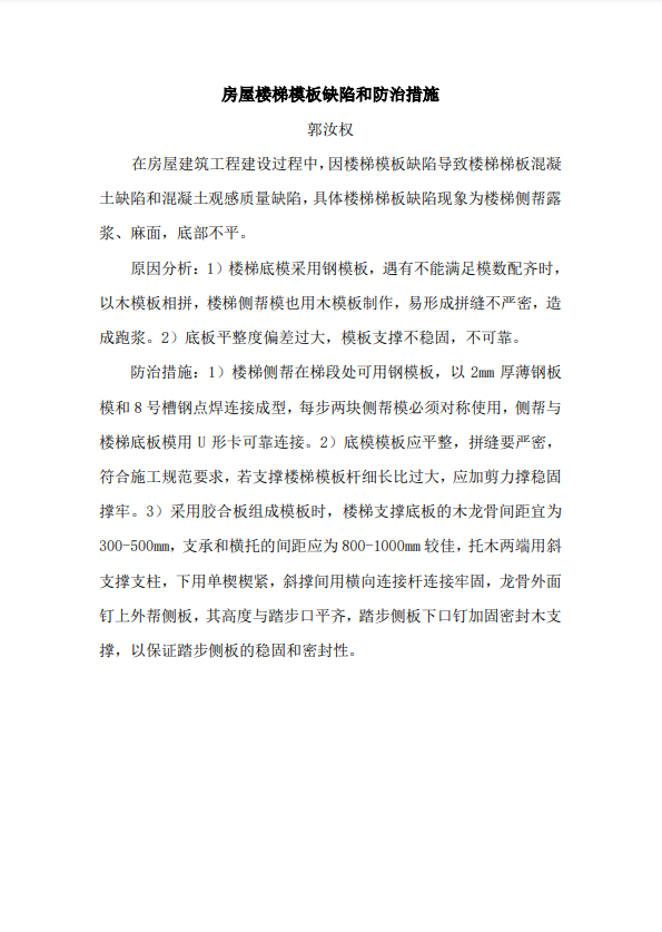 房屋樓梯模板缺陷和防治措施——郭汝權(quán)