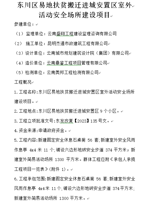 東川區(qū)易地扶貧搬遷進(jìn)城安置區(qū)室外活動(dòng)安全場(chǎng)所建設(shè)項(xiàng)目
