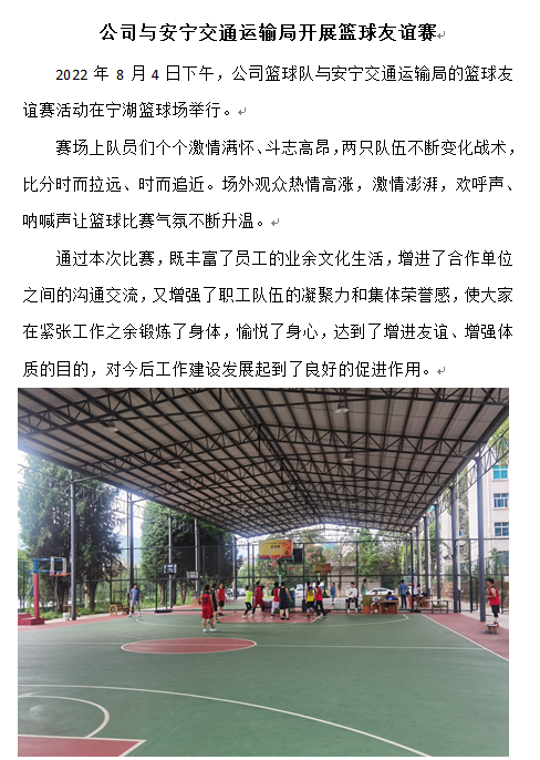 活力賽場 賽出團結 ——盛翔監(jiān)理公司和藍焰燃氣公司開展籃球友誼賽