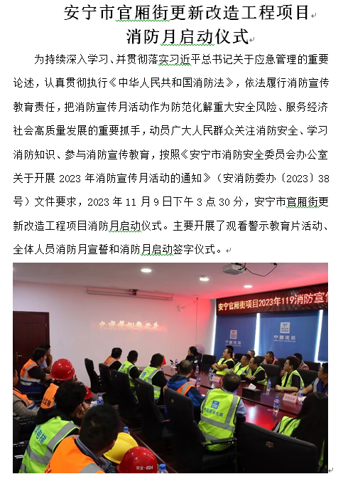 安寧市官廂街更新改造工程項(xiàng)目消防月啟動(dòng)儀式