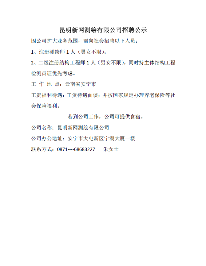 昆明新網(wǎng)測(cè)繪有限公司招聘公示