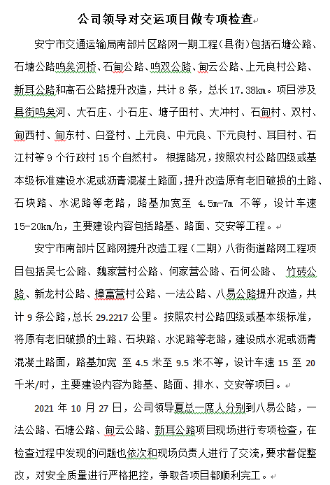 公司領導對交運項目做專項檢查