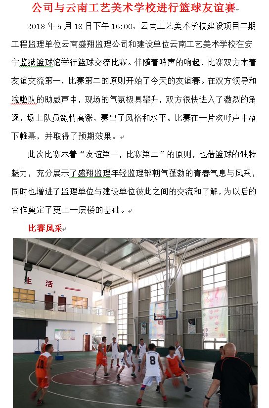 公司與云南工藝美術(shù)學校進行籃球友誼賽