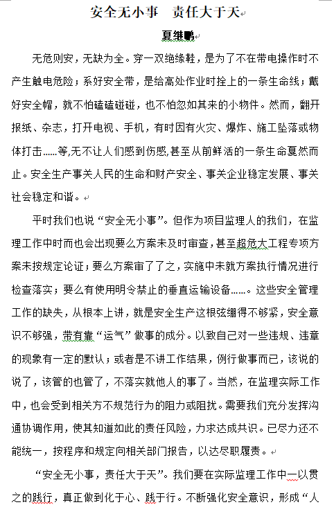 安全無小事 責任大于天——夏繼鵬