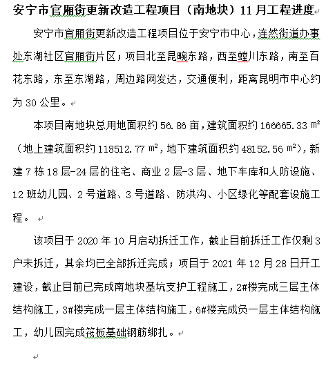 安寧市官廂街更新改造工程項(xiàng)目(南地塊)11月工程進(jìn)度