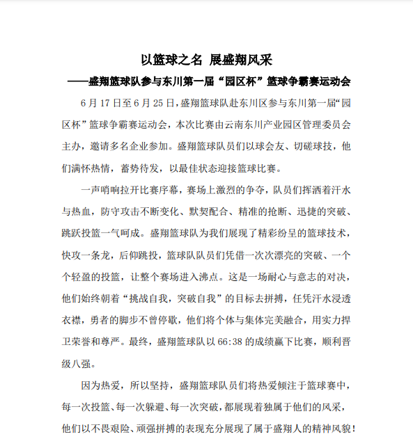 以籃球之名 展盛翔風(fēng)采 ——盛翔籃球隊(duì)參與東川第一屆“園區(qū)杯”籃球爭(zhēng)霸賽運(yùn)動(dòng)會(huì)