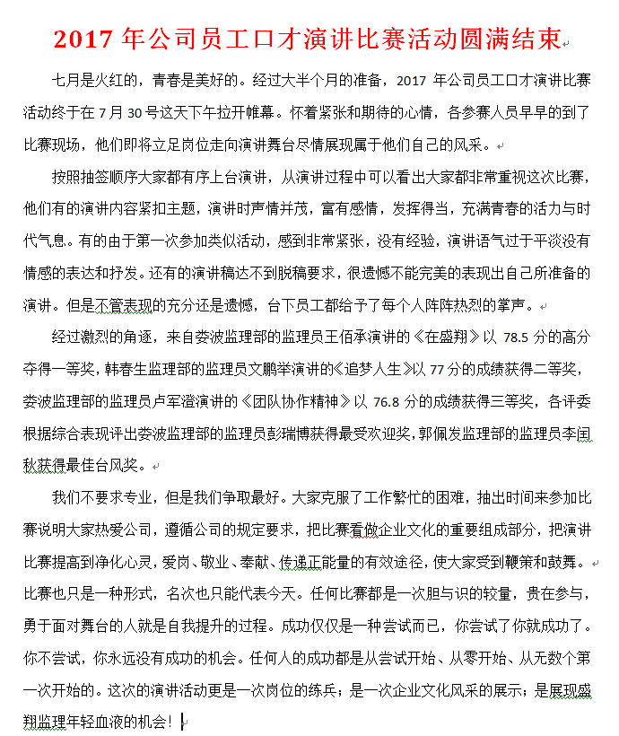 2017年公司員工口才演講比賽活動圓滿結束