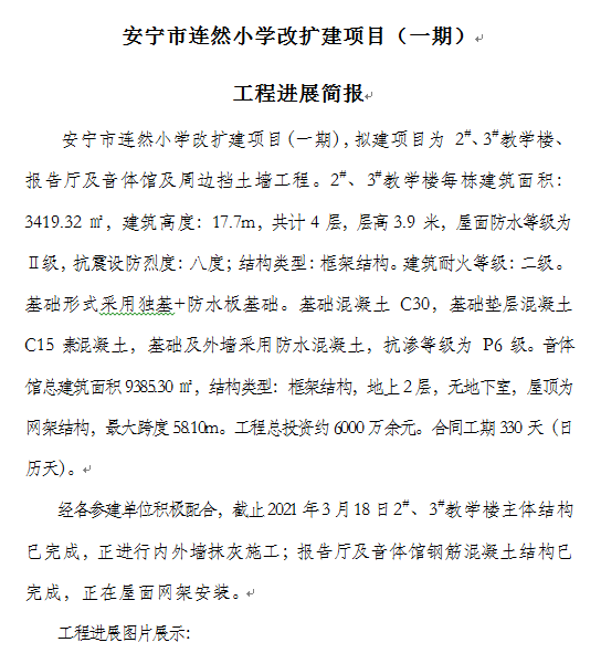 安寧市連然小學改擴建項目(一期) 工程3月進展簡報