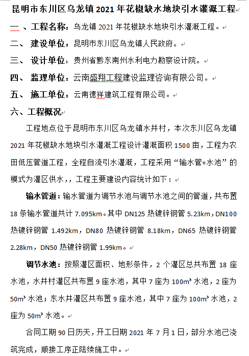 昆明市東川區(qū)烏龍鎮(zhèn)2021年花椒缺水地塊引水灌溉工程