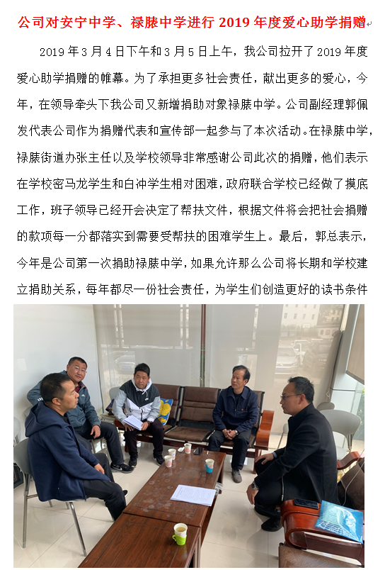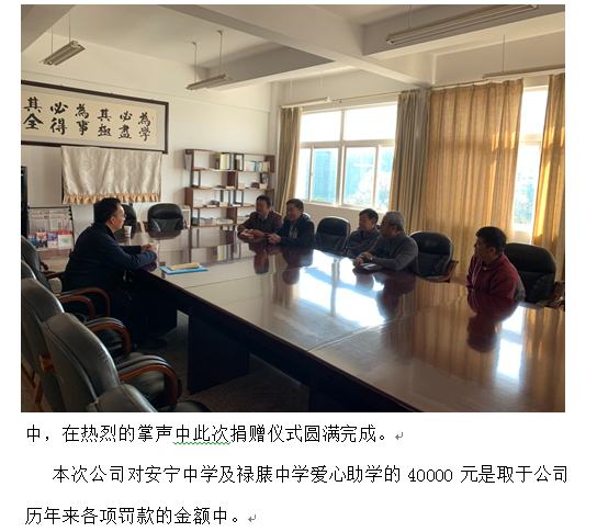 公司對安寧中學、祿脿中學進行2019年度愛心助學捐贈