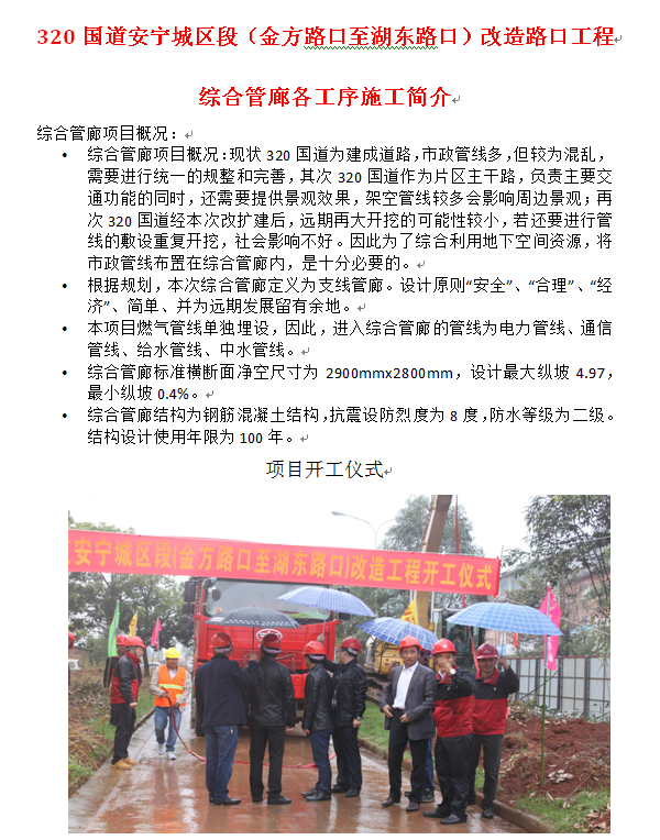 320國道安寧城區(qū)段(金方路口至湖東路口)改造路口工程 綜合管廊各工序施工簡介