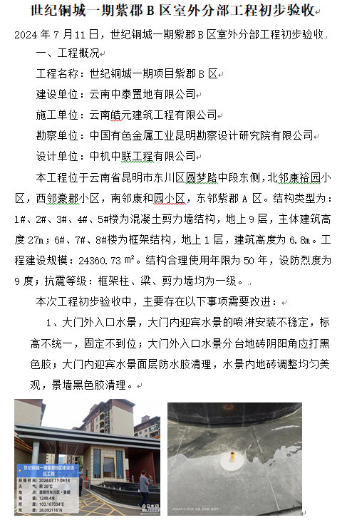 世紀(jì)銅城一期紫郡B區(qū)室外分部工程初步驗(yàn)收