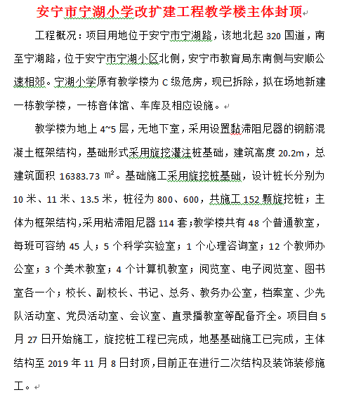 安寧市寧湖小學(xué)改擴建工程教學(xué)樓主體封頂