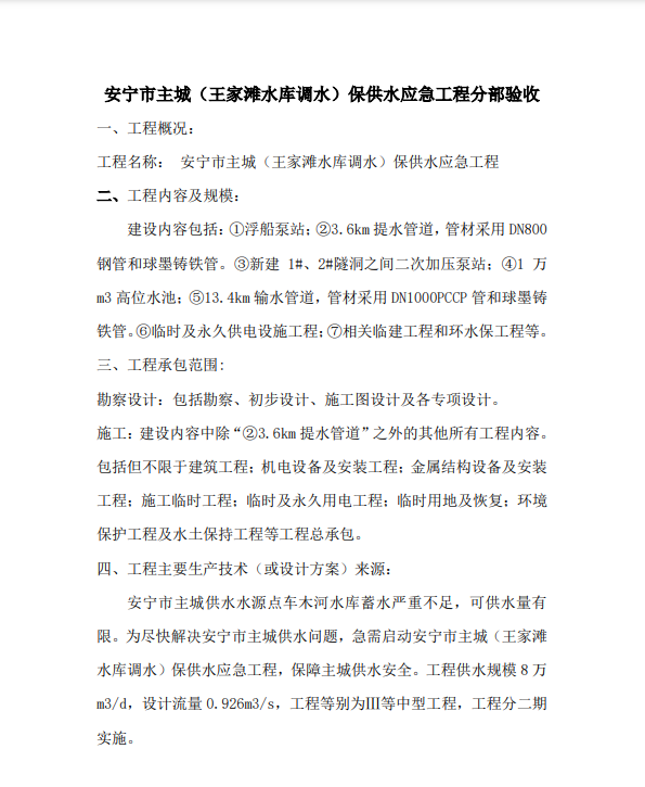安寧市主城(王家灘水庫(kù)調(diào)水)保供水應(yīng)急工程分部驗(yàn)收