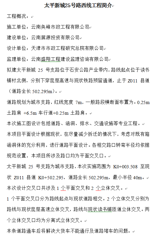 太平新城25號路西線工程簡介