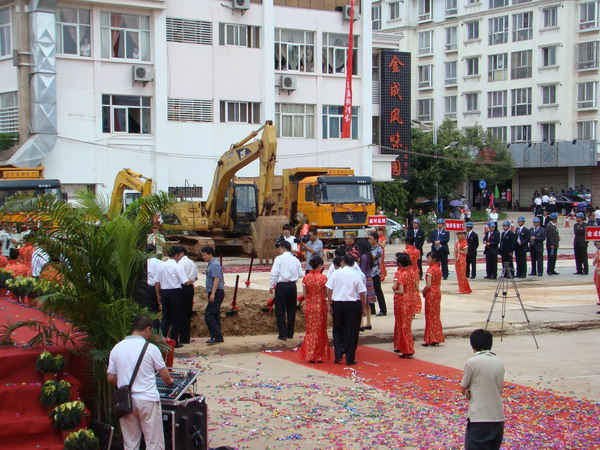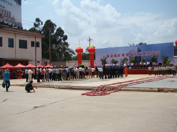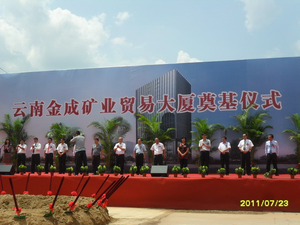 2011年7月23日金成礦業(yè)貿(mào)易大廈工程舉行開工奠基儀式,貿(mào)易大廈在金成花園為安寧東門戶標(biāo)志性建筑。工程由盛翔監(jiān)理公司監(jiān)理,總監(jiān)為吳祖光。儀式上市長對(duì)監(jiān)理人員即將做出的辛勤工作給予表揚(yáng)與肯定,同時(shí)要求監(jiān)理人員嚴(yán)把質(zhì)量安全關(guān)。 ?????????????????????????????????????????????