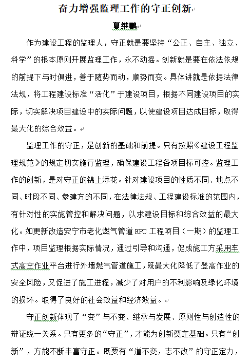 奮力增強(qiáng)監(jiān)理工作的守正創(chuàng)新——夏繼鵬