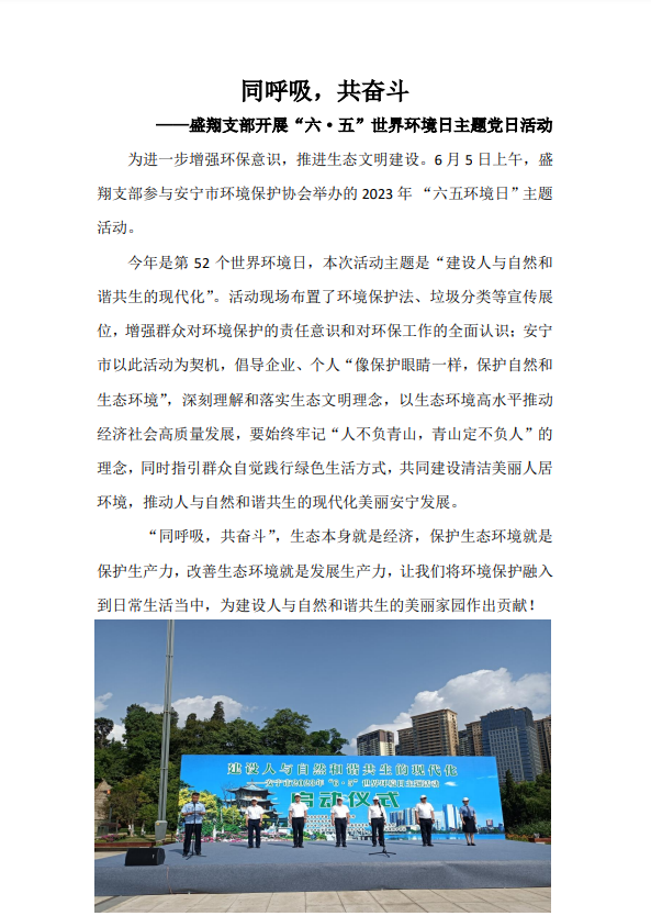 同呼吸,共奮斗 ——盛翔支部開(kāi)展“六 五”世界環(huán)境日主題黨日活動(dòng)