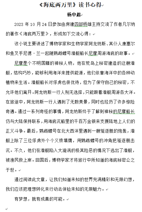 《海底兩萬里》讀書心得——楊中超